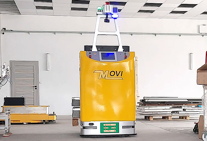Movi 2000U jest nowym produktem, uzupełniającym naszą ofertę o roboty typu "wózek widłowy". Konstrukcja mechaniczna pozwala na udźwig 2000kg na wysokość 160 cm.